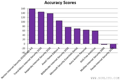 ເປັນໄປຕາມຄາດ Norton Internet Security 2010 ຂອງ Symantec ເຂົ້າວິນເປັນອັນດັບໜຶ່ງຕາມຕິດ້ວຍຊອຟົແວລ໌ຈາກ Trend Micro ແລະ Kaspersky ຢ່າງໃດກໍຕາມ ຜົນການທົດສອບທີ່ໜ້າແປກໃຈທີສຸດກໍຄື McAfee Internet Security 2009 ແລະ Panda Internet Security 2010 ກັບເປັນສອງອັນດັບທ້າຍ ໂດຍທັງສອງມີປະສິດທິພາບໃນການປ້ອງກັນມັນແວລ໌ໄດ້ສຳເລັດ ແລະລົ້ມເຫລວເທົ່າໆ ກັນ