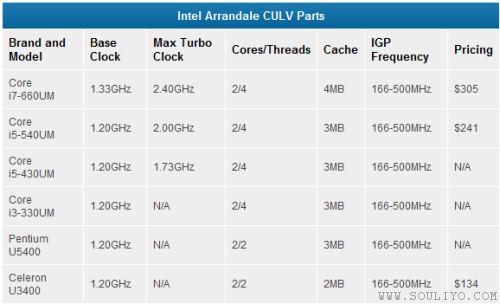 Intel ອອກຊິບ ULV Core i3,i5 ເເລະ i7