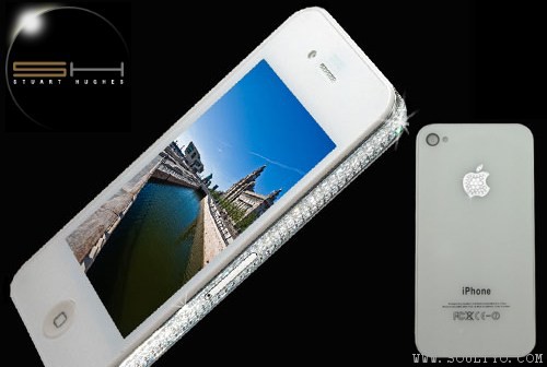 ຂ່າວນີ້ຈະເຮັດໃຫ້ທ່ານຜູ້ອ່ານຮູ້ວ່າ iPhone 4 ລຸ້ນທີ່ແພງທີ່ສຸດບໍ່ແມ່ນລຸ້ນທີ່ມີຄວາມຈຸ 32GB ແຕ່ຈະເປັນລຸ້ນທີ່ໄດ້ຮັບການດີໄຊນ໌ຕົກແຕ່ງເພິ່ມເຕິມໂດຍ Stuart Hughes ເພາະມັນມາພ້ອມກັບຄວາມໄຮໂຊສຸດໆ ໂດຍຕົວທຳອິດທີ່ເຫັນຂ້າງລຸມນີ້ຈະເປັນລຸ້ນເພັດລ້ອມ (ຂະໜາດ 6.5 ກະລັດ) ບໍລິເວນຂອບຂອງຕົວເຄື່ອງ ຊຶ່ງເປັນສ່ວນທີ່ເຊື່ອມຕໍ່ກັບເສົາອາກາດທີ່ເປັນເສັ້ນສີດຳນ້ອຍໆ ເທິງແຖບໂລຫະ ການລ້ອມເພັດທີ່ມີຄຸນສົມບັດບໍ່ນຳໄຟຟ້ານອກຈາກຈະເຮັດໃຫ້ເບິ່ງຫລູຫລາແລ້ວ ມັນຍັງອາດຈະຊ່ວຍໃຫ້ຜູ້ໃຊ້ບໍ່ໄປສຳຜັດກັບເສົາອາກາດໂດຍກົງອີກດ້ວຍ ແຕ່ທີ່ ແອບເປີ້ນບອກມາກໍຄື ຊອງທີ່ເໝາະກັບ iPhone 4 ຄວນເຮັດຈາກພາສະຕິກ ຫລືຢາງ ເພັດລ້ອມຈະຊ່ວຍໃຫ້ສັນຍານດີຂຶ້ນບໍນໍ່ ແຕ່ລາຄາແພງຂຶ້ນແທ້ໆ ເພາະທີ່ເຫັນໃນຮູບນີ້ມັນມີລາຄາຢູ່ທີ່ 19,514 ຫລຽນຯ