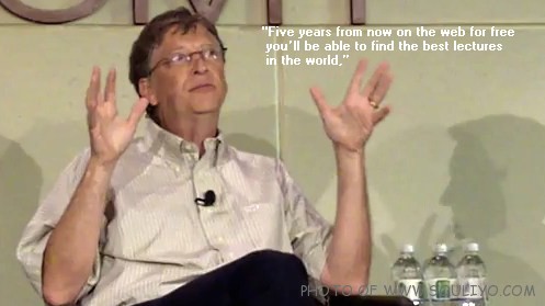 ລາຍງານຂ່າວລ່າສຸດ ບິນເກດສ໌ (Bill Gates) ທຳນາຍອານາຄົດວ່າ ໃນອີກ 5 ປີຂ້າງໜ້າຈະເກີດການປ່ຽນແປງຄັ້ງໃຫຍ່ໃນແວດວົງການສຶກສາ ໂດຍສະເພາະກັບສະຖານສຶກສາໃນລະດັບມະຫາວິທະຍາໄລຈະລຸດຄວາມສຳຄັນລົງຫລາຍ ແລະອິນເຕີລ໌ເນັດຈະເຂົ້າມາມີບົດບາດຕໍ່ວົງການສຶກສາແທນ “ອີກ 5 ປີຈາກນີ້ໄປ ໃນໂລກຂອງຟຼີເທິງເວັບ ທ່ານຈະສາມາດພົບຫົວຂໍ້ບັນລະຍາຍທີ່ດີທີສຸດໃນໂລກໄດ້” ເມື່ອເຖິງເວລານັ້ນ ທ່ານຍັງຈຳເປັນຕ້ອງເດິນທາງໄປຮຽນທີ່ມະຫາວິທະຍາໄລອີກຫລືບໍ?