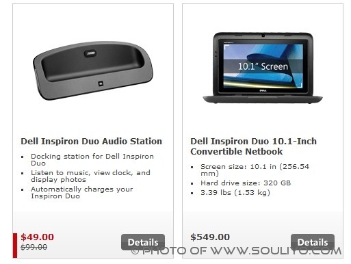 ລາງານຂ່າວລ່າສຸດ Microsoft ເປີດໃຫ້ຈອງ Dell Inspiron Duo ຜ່ານທາງ Microsoft Store ແລ້ວ ນອກຈາກນີ້ຍັງມີເປີດໃຫ້ຈອງ Dell Inspiron Duo Audio Station ທີ່ເປັນຄູ່ຫູຂອງ Dell Inspiron Duo ເຊັ່ນດຽວກັນ ເຊິ່ງລາຄາຂອງ Dell Inspiron Duo Audio Station ນີ້ ຢູ່ທີ່ $49 ເຊິງຈະຖືກກວ່າລາຄາປົກກະຕິ ເຖິງ $50. ສ່ວນລາຄາຂອງ Dell Inspiron Duo ທີ່ເປີດໃຫ້ສັ່ງຈອງຜ່ານທາງ Microsoft Store ນັ້ນແມ່ນຢູ່ທີ່ $549.