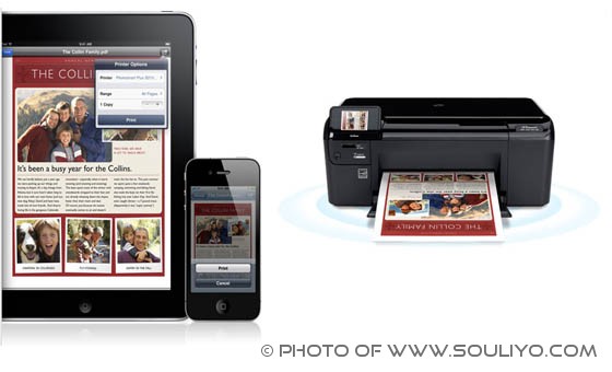 ຄຸນສົມບັດຕໍ່ໄປກະຄືເພີ່ມ  AirPrint ເຂົ້າໄປໃນ iPhone, iPod Touch, iPad ເຊິ່ງຈະເຮັດໃຫ້ຜູ້ໃຊ້ສາມາດພິ້ນ ຮູບ,ຫນ້າເວັບ, ຫລື ເອກະສານຕ່າງໆຜ່ານ iPhone, iPod Touch, iPad ໄດ້ທັນທີເລີຍ ໂດບໍ່ຕ້ອງຕ້ອງມີ Driver ຫລື ສາຍເຊື່ອມຕໍ່ໃດໆ.