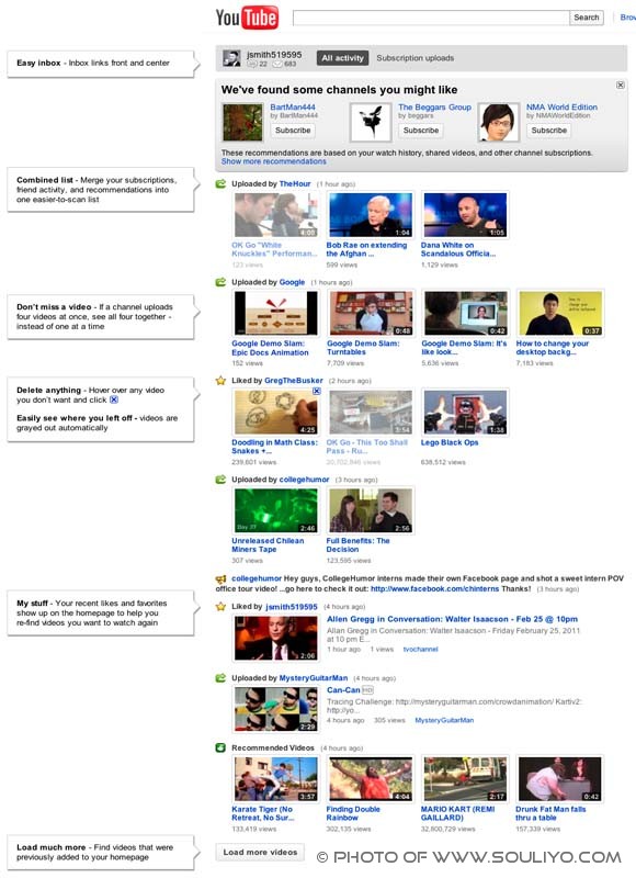 ລ່າສຸດທາງ Youtube ໄດ້ອັບເດດ ຫລືປ່ຽນແປງໂສມຫນ້າເວັບ ເຊິ່ງຈະເຮັດທຸກຢ່າງລວມຢູ່ໃນຫນ້າທຳອິດຫລາຍຂຶ້ນ ເຊິ່ງໃນການປ່ຽນແປງຄັ້ງນີ້ Youtube ກໍ່ໄດ້ມີການທົດລອງມາເປັນເວລາເດືອນກວ່າແລ້ວ, ລ່າສຸດຈຶ່ງໄດ້ປ່ຽນແປງຢ່າງເປັນທາງການ. ເຊິ່ງໃນການປ່ຽນແປງຄັ້ງນີ້ກໍ່ໄດ້ມີການຫລາຍໆຢ່າງເຊັ່ນ: