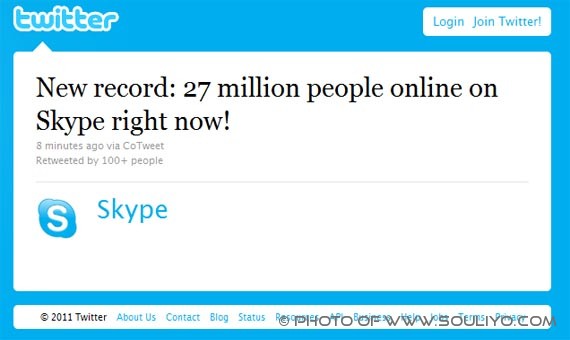 Skype ມີຜູ້ໃຊ້ Online ພ້ອມກັນຈຳນວນ 27ລ້ານຄົນທົ່ວໂລກ