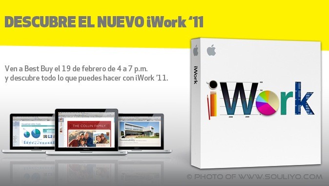 ລ່າສຸດທາງເວັບໄຊຕ໌ ຫ້າງຂາຍເຄື່ອງອິເລັກໂຕຼນິກລາຍໃຫຍ່ BestBuy ສາຂາ Mexico ໄດ້ໂພສປະກາດລົງຫນ້າເວັບວ່າ iWork 11 ຈະເປີດໂຕໃນວັນທີ່ 19 ກຸມພາ ທີ່ຈະຮອດນີ້, ແຕ່ນັ້ນກໍ່ບໍ່ໄດ້ເປັນປະກາດ ຢ່າງເປັນທາງການຂອງ Apple. ແຕ່ທາງໂຄສະນາດັ່ງກ່າວກໍ່ຍັງຄົງຢູ່ຫນ້າເວັບ ແລະ ຍັງບໍ່ຖືກຖອນອອກແຕ່ຢ່າງໃດ. ຫາກມີຄວາມຄືບຫນ້າໃດໆກ່ຽວກັບ iWork 11 ຈະຮີບນຳມາລາຍງານໃຫ້ຮັບຮູ້ກັນທັນທີ.
