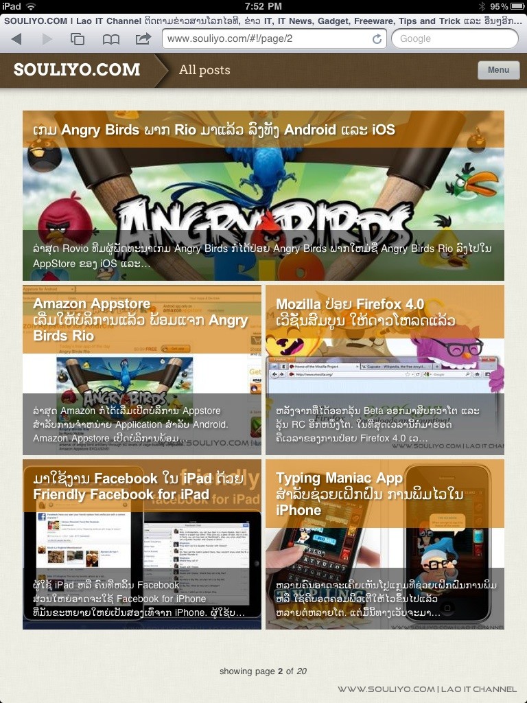 ເວີຊັ່ນ iPad ຂອງ SOULIYO.COM ນັ້ນຈະສາມາດສະແດງຜົນເມື່ອຜູ້ໃຊ້ ໃຊ້ iPad ໃນການເຂົ້າຊົມເວັບເທົ່ານັ້ນ, ຫາກຜູ້ໃຊ້ Browser ໃນຄອບພິວເຕີເຂົ້າມາກໍ່ຈະຍັງເປັນ ຫນ້າຕາແບບເກົ່າ ເຊິ່ງຫາກໍ່ປັບປຸງເລັກຫນ້ອຍໄປມື້ຄືນນີ້.