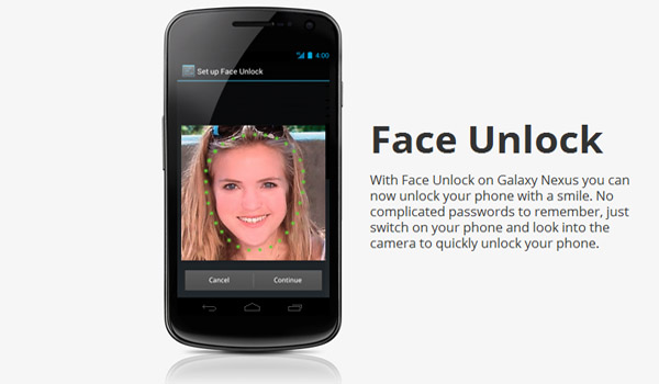 – Face Unlock ຈະເປັນລະບົບຈືຈຳໃບຫນ້າຂອງຜູ້ໃຊ້, ໂດຍຜູ້ໃຊ້ສາມາດໃຊ້ໃບຫນ້າຂອງຕົນເອງ ເຂົ້າໃນການລັອກໂທລະສັບ ຫລື ແທັບເລັດຂອງຕົນເອງໄດ້, ແລ້ວກໍ່ໃຊ້ໃບຫນ້າຂອງໂຕເອງເພຶ່ອປົດລັອກ ເມຶອຢາກໃຊ້ງານ. ເຊິ່ງຄວາມສາມາດແບບນີ້ ເຮົາອາດຈະເຫັນໃນບັນດາ App ຕ່າງໆມາກ່ອນແລ້ວ. ແຕ່ ໃນ Android 4.0 ທາງ Google ຫັນມາຈັບໄອເດຍນີ້ຍັດລົງໄປໃສ່ ເພຶ່ອຕອບສະຫນອງຄວາມຕ້ອງການຂອງຜູ້ໃຊ້.