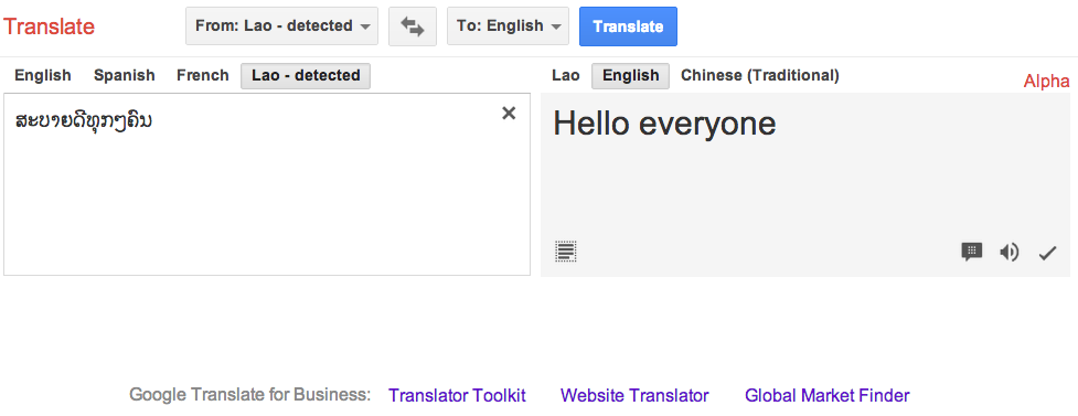 ລາຍງານຂ່າວຫຼ້າສຸດເຊິ່ງເປັນຂ່າວດີສຳລັບຜູ່ໃຊ້ໃນປະເທດລາວ ແລະ ຄົນຕ່າງຊາດທີ່ຕ້ອງການຮູ້ພາສາລາວເລີຍກະວ່າໄດ້ ເມື່ອ Google ໄດ້ເພີ່ມພາສາລາວເຂົ້າໄປໃນເຄື່ອງມືແປພາສາ Google Translate ໄປເປັນທີ່ຮຽບຮ້ອຍແລ້ວ. ທັ້ງນີ້ ການເພີ່ມພາສາລາວເຂົ້າໄປໃນ Google Translate ໄດ້ເຮັດໃຫ້ Google Translate ມີທັງໝົດ 65 ພາສາ ແລະ ພາສາລາວກໍ່ເປັນພາສາທີ 65.