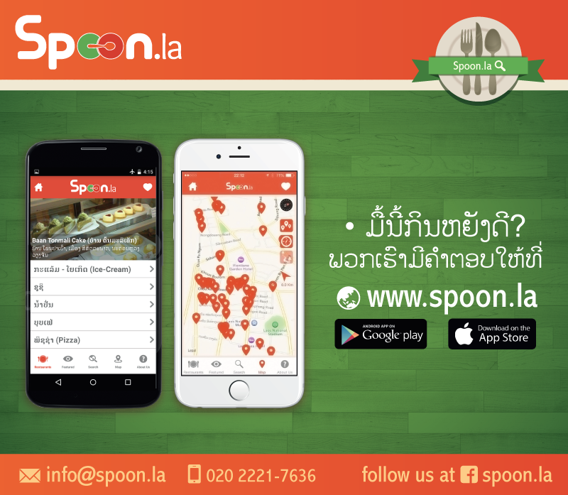 ພໍດີມີໂອກາດໄດ້ຮ່ວມງານກັບທີມງານ SPOON.LA ເພື່ອອອກແອັບຯທີ່ເປັນປະໂຫຍດໃຫ້ກັບຄົນຍຸກໃຫມ່ທີ່ໃຊ້ໂທລະສັບມືຖື smartphone. ເຊິ່ງປະຈຸບັນທາງເວັບໃຊ້ SPOON.LA ໄດ້ອອກແອັບຯເພື່ອຕອບສະໜອງການເຂົ້າເຖິງຜູ້ໃຊ້ຍຸກໃຫມ່ ແລະ ເຮັດໃຫ້ການເຂົ້າເຖິງຂໍ້ມູນຂອງຮ້ານອາຫານຕ່າງໆໃນບ້ານເຮົາໄດ້ງ່າຍຂຶ້ນ.