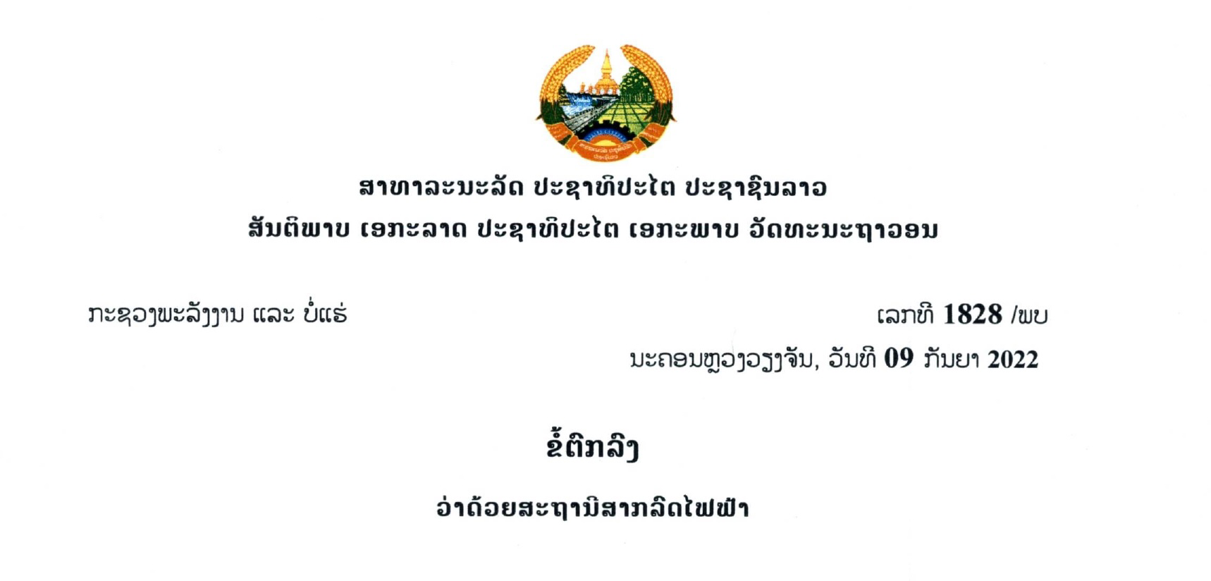 ວັນທີ 9ກັນຍາ 2022 ທີ່ຜ່ານມາ ລັດຖະມົນຕີ ກະຊວງພະລັງງານ ແລະ ບໍ່ແຮ່ ໄດ້ເຊັນລົງນາມອອກຂໍ້ຕົກລົງ ວ່າດ້ວຍສະຖານີສາກລົດໄຟຟ້າ ສໍາລັບໃຜທີ່ກໍາລັງຢາກເຮັດທຸລະກິດຕູ້ສາກ ຫລື ຢາກເອົາຕູ້ສາກຈໍານວນຫລາຍຕູ້ ຫລື ກໍາລັງໄຟສູງໄປຕິດຕັ້ງໃນສະຖານທີ່ຂອງຕົນເຊັ່ນ ໂຮງແຮມ, ບ້ານພັກ, ຮ້ານອາຫານ, ກາເຟ, ຫ້າງຊັບພະສິນຄ້າ ຫລື ສະຖານທີ່ອື່ນໆ ສາມາດສຶກສາຂໍ້ມູນໄດ້ຈາກຂໍ້ຕົກລົງນີ້ໄດ້.